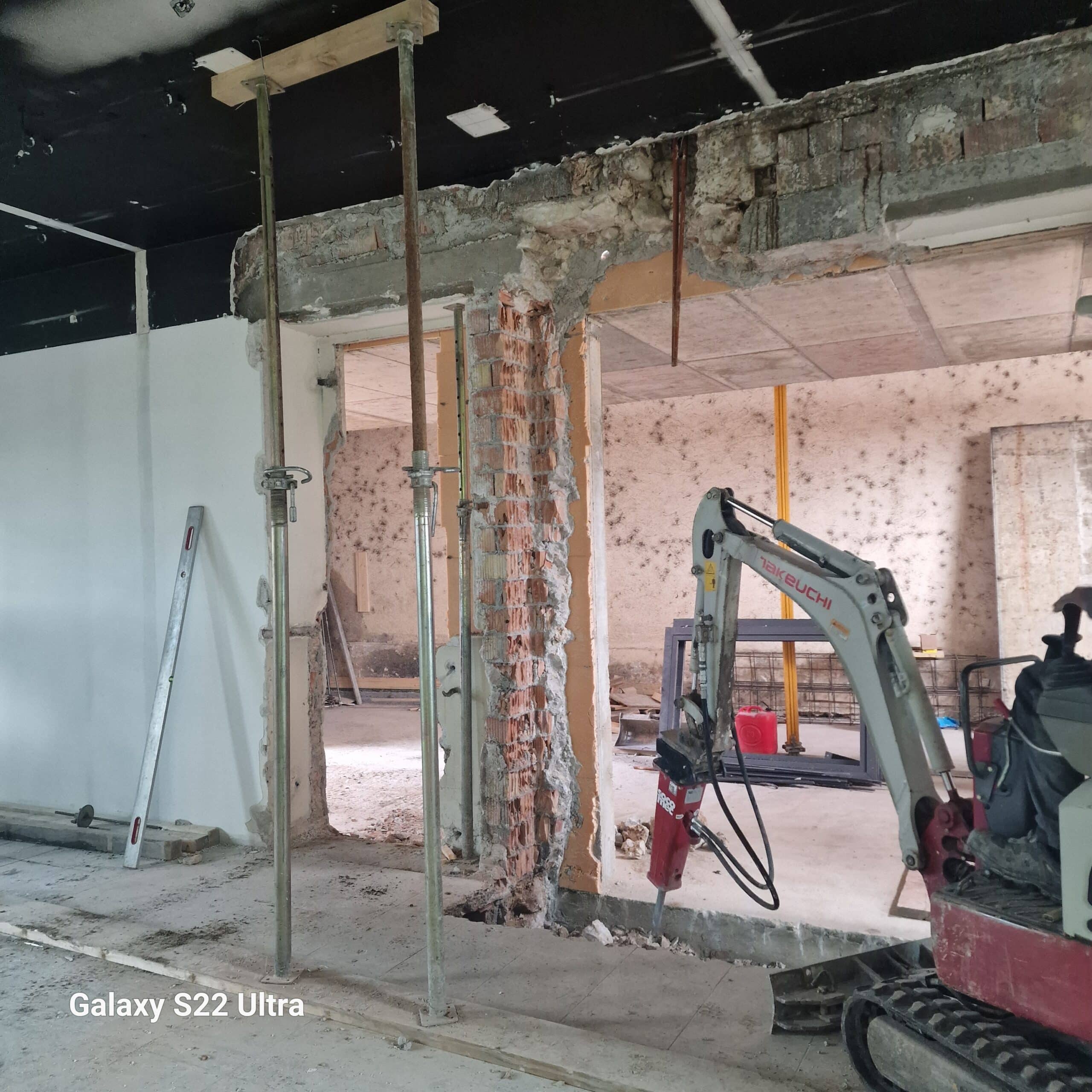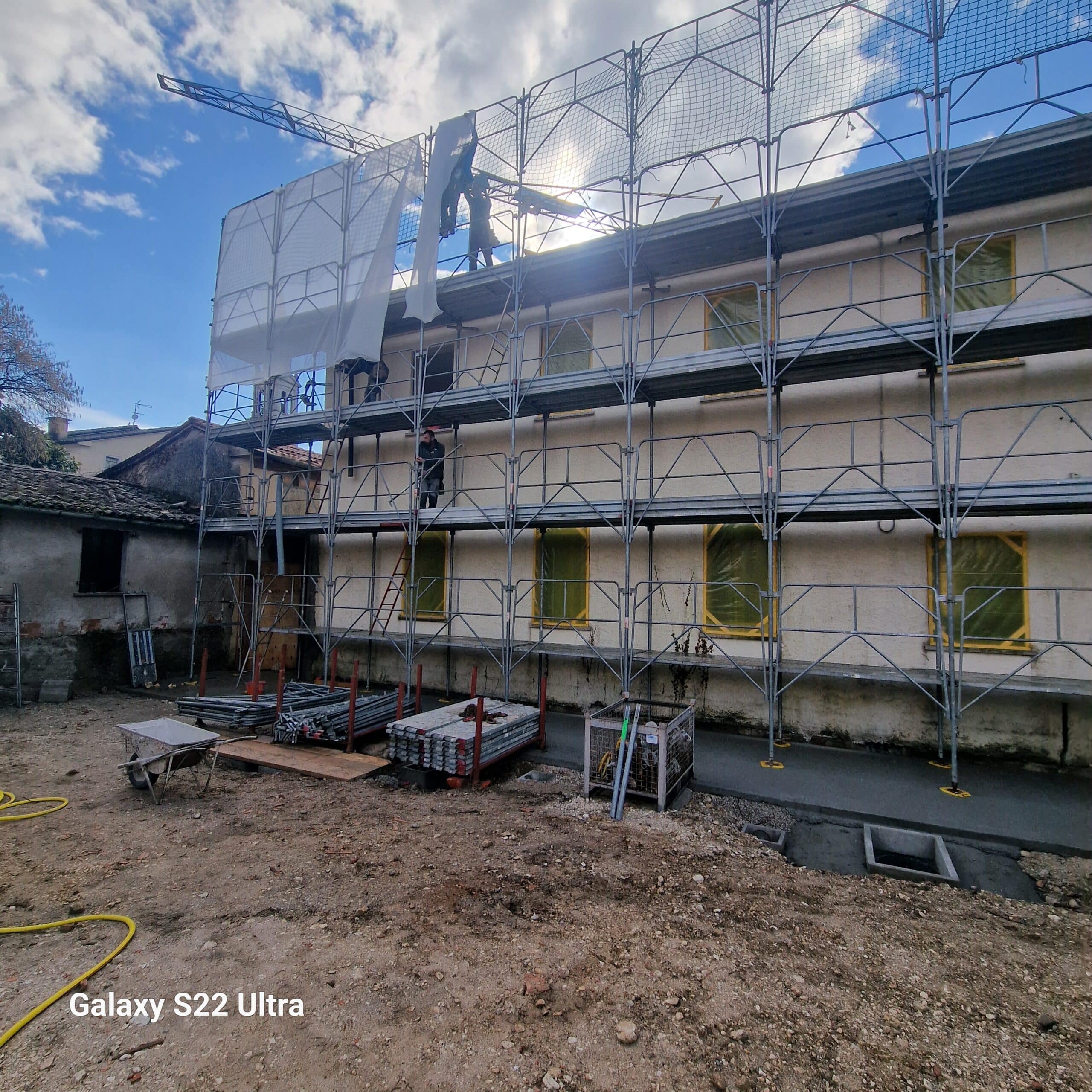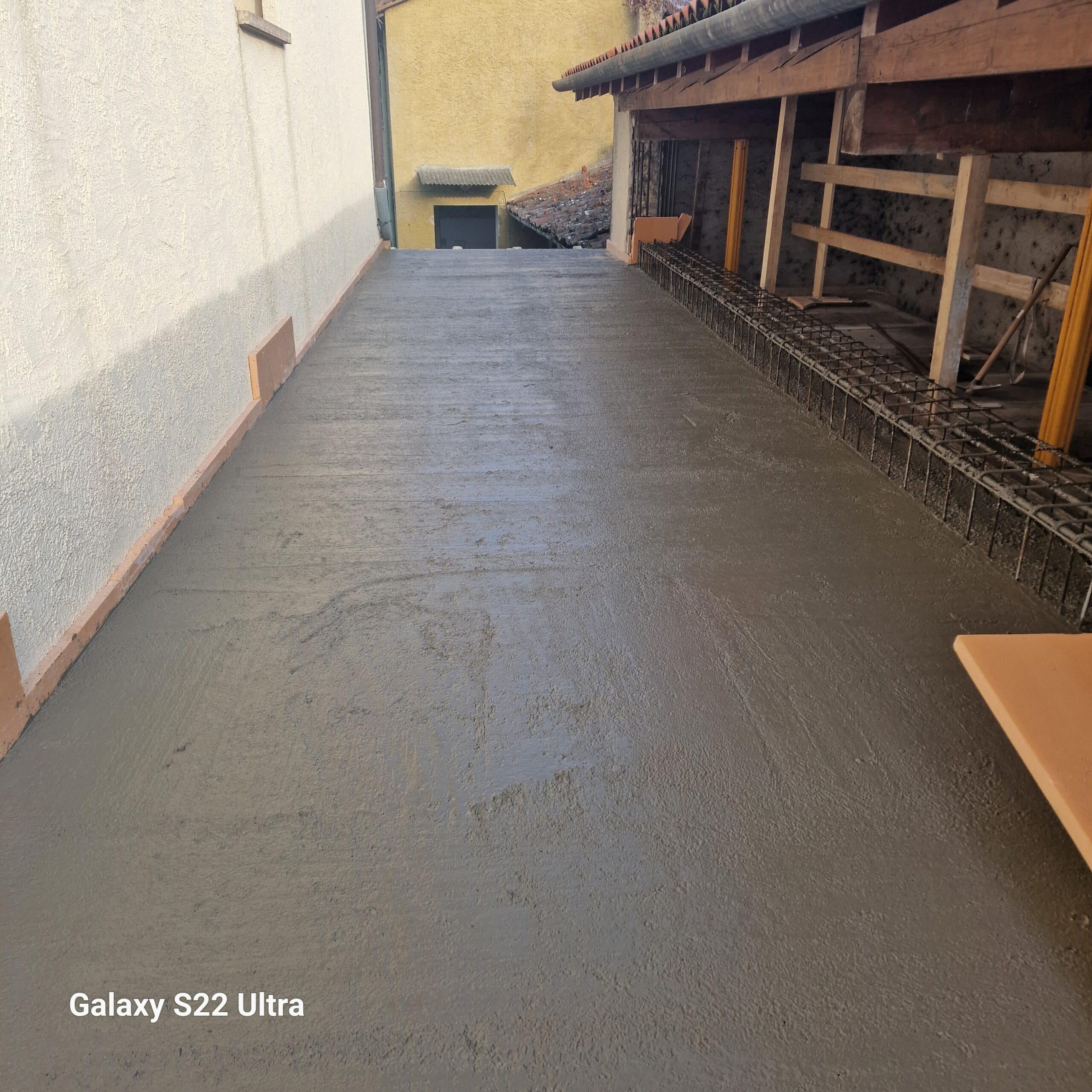 L’ampliamento e stato realizzato in opera mediante armatura e getto di strutture in c.a. per la realizzazione delle fondazioni a platea, dei pilastri, travi e della soletta di copertura. Particolare attenzione è stata data alle opere in c.a. in quanto i tre corpi di fabbrica sono stati mantenuti indipendenti l’uno dall’altro mediante giunti tecnici strutturali, e la realizzazione di una doppia travatura per suddividere il carico, da una parte della soletta in c.a. e dall’altra del tetto del portico esistente.
