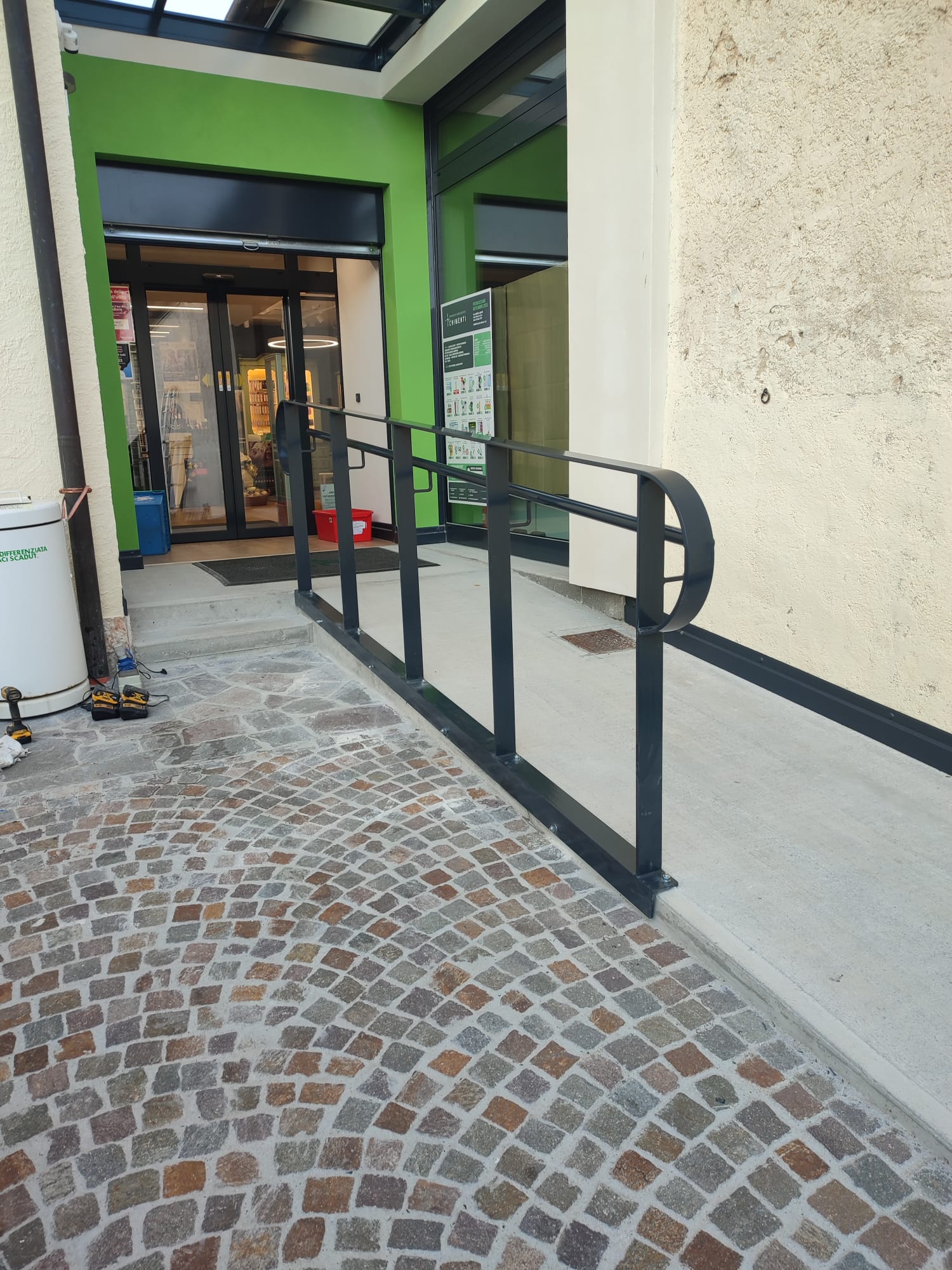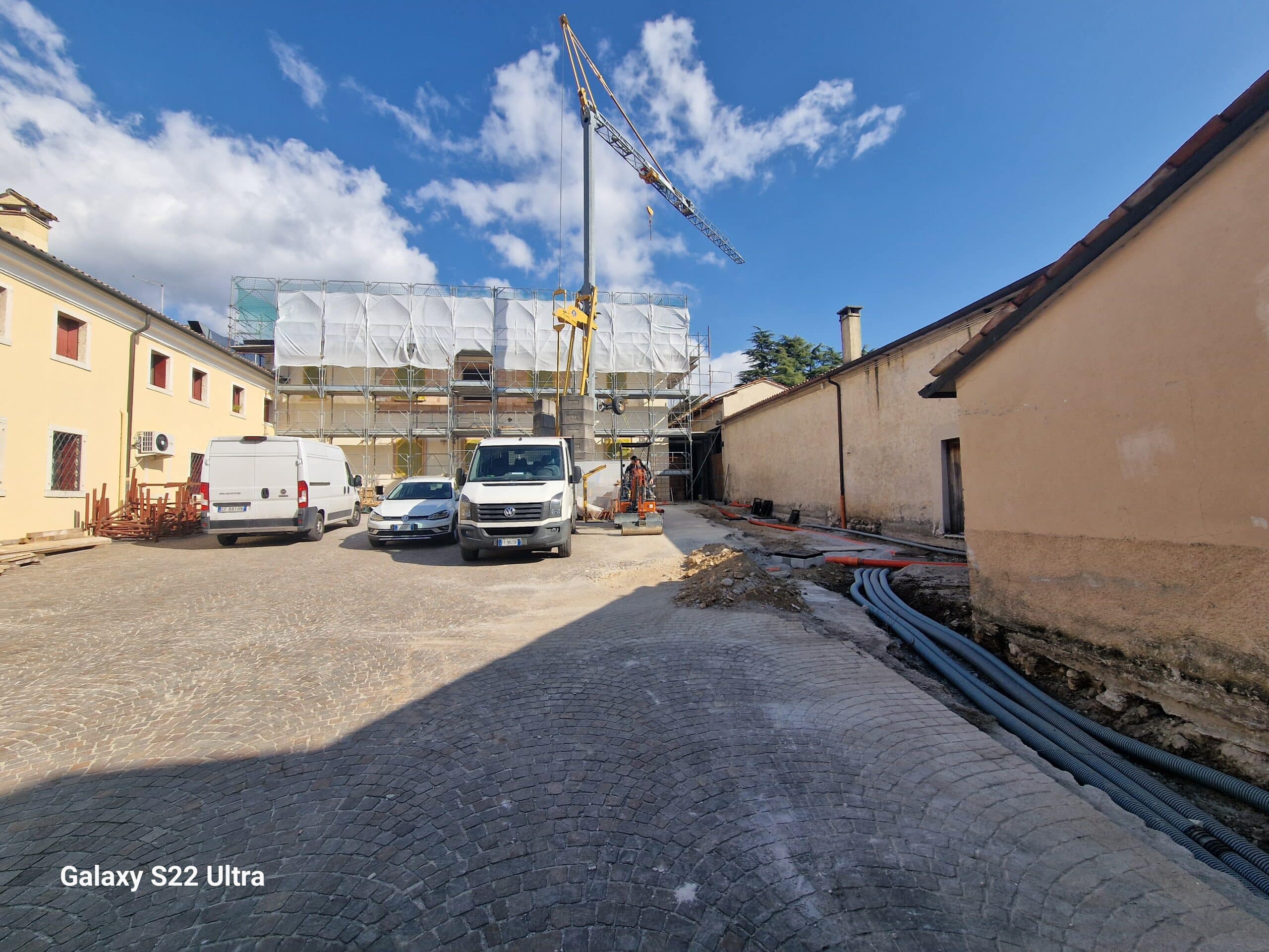 Al piano terra, l’area scoperta del lotto sarà destinata ad ampio parcheggio in porfido, in parte già esistente e in parte nuovo a completamento dell’area.