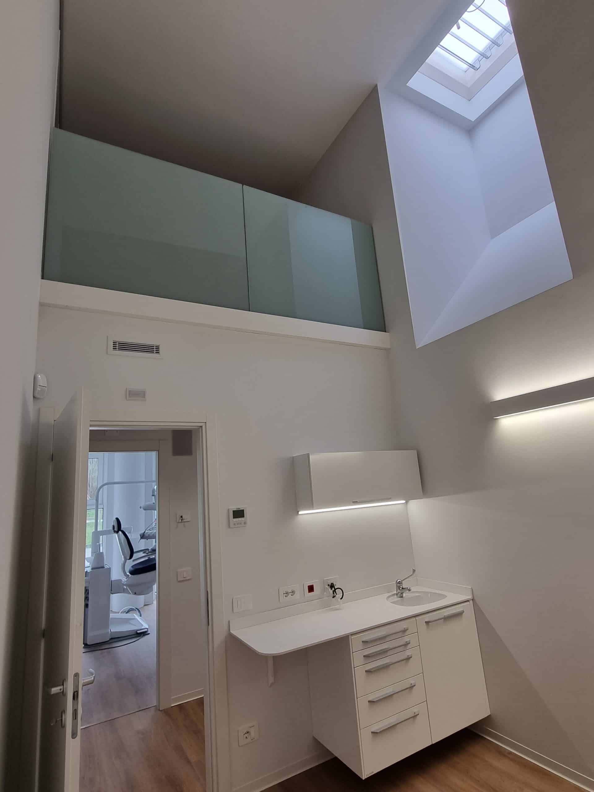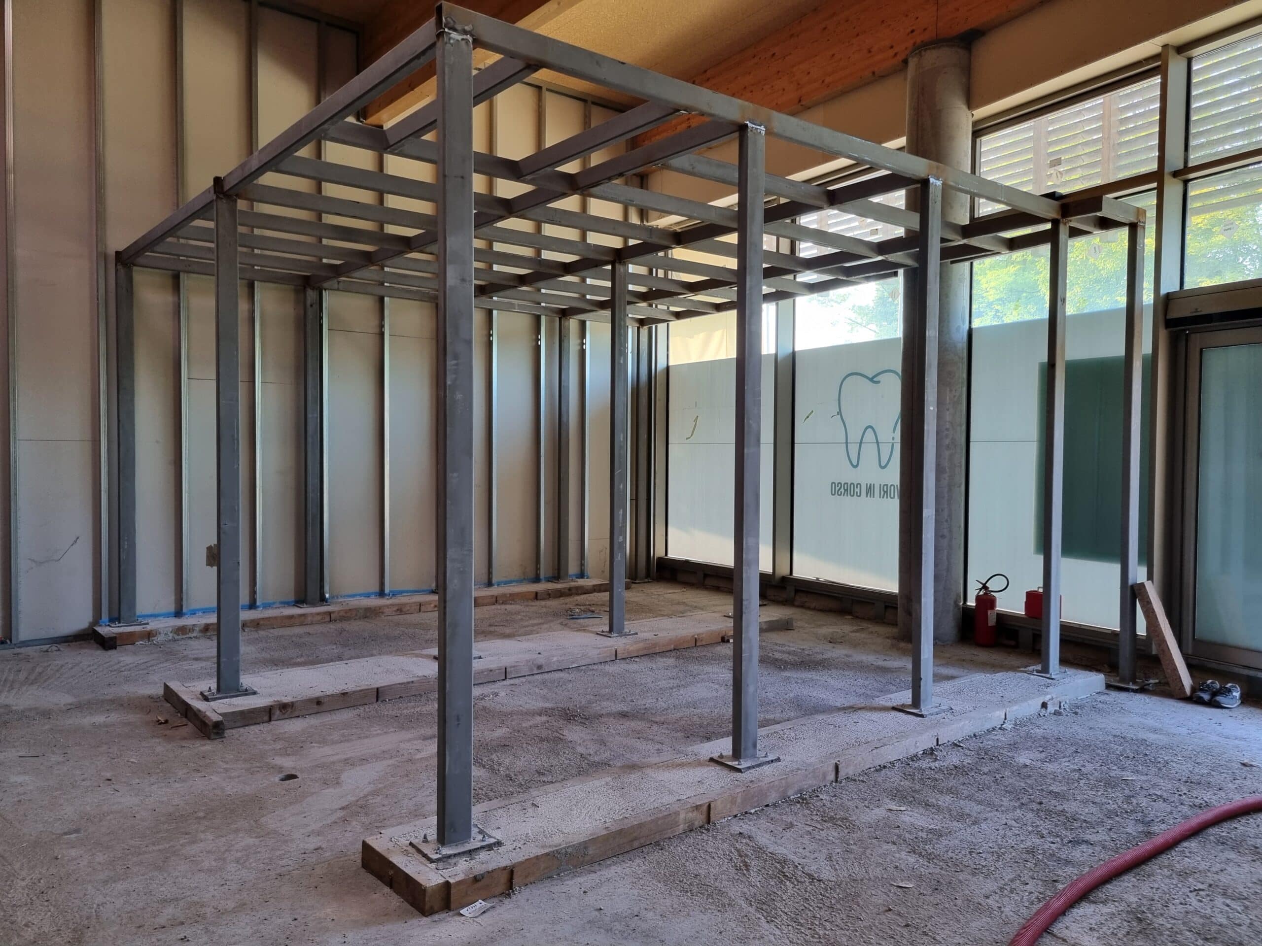 La proposta progettuale prevede la realizzazione di partizioni in cartongesso che verranno a creare spazi da adibire a 4 ambulatori dentistici.